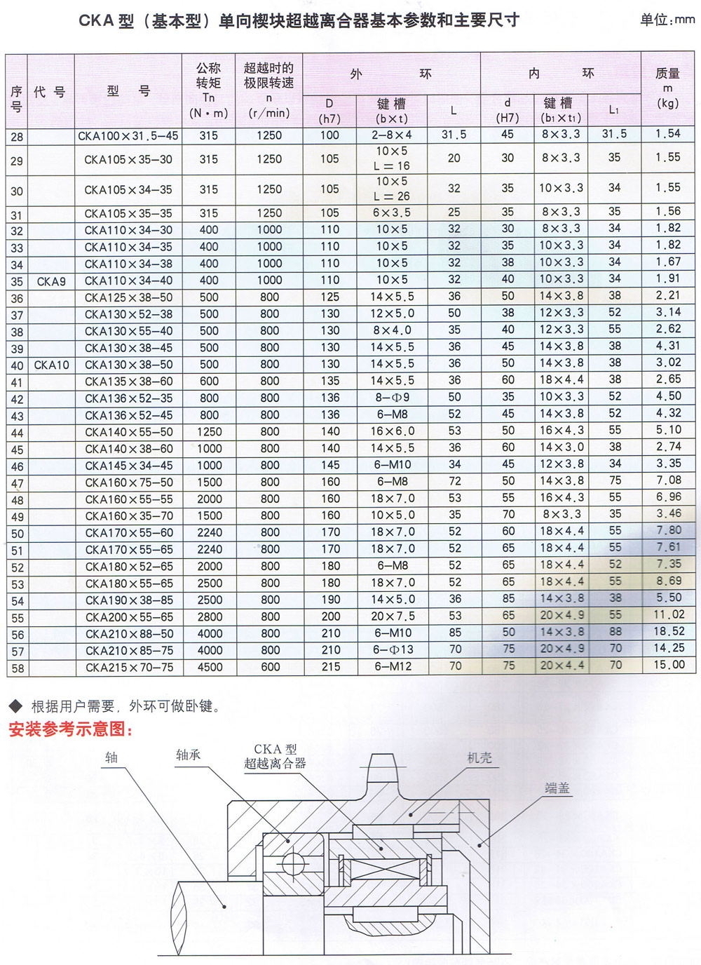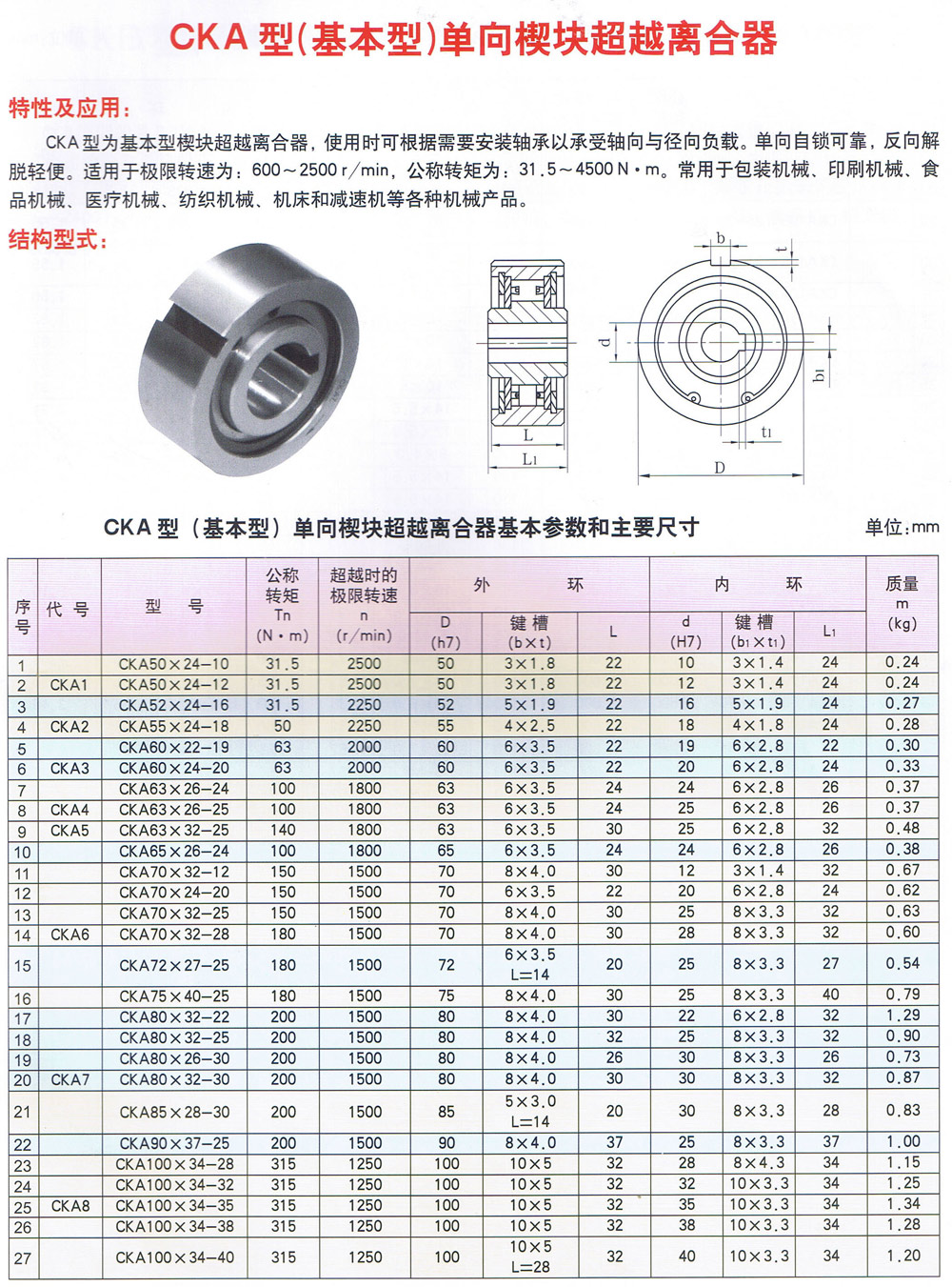 CKA型超越離合器
